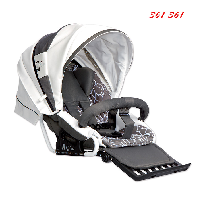 Супер колясочка!!! У нас тоже была gesslein в белой экокоже с зелеными вставками, но с другой рамой (F4), ваша рама лучше, т.к. у нее есть амортизация , а у нас ее просто не было (((. Прогулочный блок просто обалденный - все продумано до мелочей (кармашки. вентиляция, капюшон, жесткая спинка без всяких завалов с множеством промежуточных положений, регулируемая и удлиняемая подножка и т.д. и т.п. ) Хочу вас только предупредить насчет ручки: в вашей модели (в отличие например от gesslein vision ) ручка без кнопок , такая же как у нас была, у такой ручки очень серьезный конструктивный недостаток, т.к. место соединения пластика с алюминиевой рамой не очень усилено: пластиковая часть внутри рамы составляет примерно см. 4. При надавливании на ручку коляски самая большая нагрузка приходится на это место соединения, т.е. например когда вы заезжаете на бордюр, в итоге пластик может не выдержать, как произошло у нас - пластик у соединительной части просто переломился пополам и немного деформировал алюминиевую раму, хотя я только слегка надавила на середину ручки и вес ребенка был тогда килограмм 7-8 не более. Потом долго искали запчасть. Также кнопочка которая фиксирует три положения ручки со временем расшатывается, нужно периодически подкручивать с внутренней стороны фиксатора шайбу (если закрутить полностью, какое-то время люфта ручки не будет вообще), так что осторожнее !!! При аккуратном использовании и понимании этой проблемы, я думаю у вас все будет отлично))).