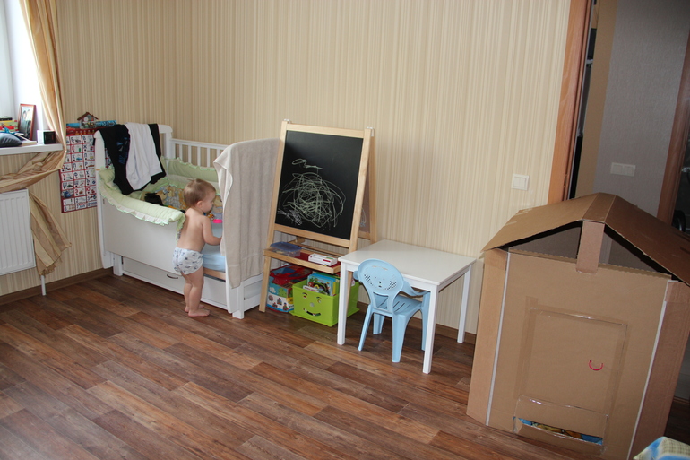 а у нас спит в своей детской кроватке, мы переднюю стенку сняли и прикрутили небольшую полку, чтобы не падал во сне (за неимением средств на покупку новой кровати) и надо сказать, ребенку очень понравилась такая самостоятельность, он до этого и не спал в своей кроватке, а сейчас сам ложится и засыпает без проблем)