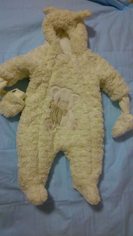 такой махровый комбезик и шапочку,под него боди или распашенку тоненькую, далее