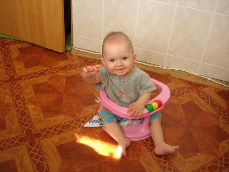 UPD: Спасибо всем, кто откликнулся! Решили обходиться без стульчика. Вспомнила, что у нас уже есть коврик для ванной. Положили его вчера, посадили малютку, так она и без стульчика отлично себе сидит-играет, и передвигаться может по ванне при необходимости. Рядом сидеть, конечно, надо, но ведь и со стульчиком не отлучишься от ребенка. :)