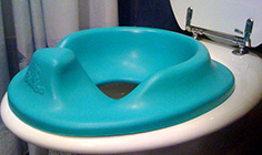 Наша отлично сидит на унитазе.Причем мало того, в горшок, как таковой так и не делала дела. Сразу согласилась на унитаз.Накладка есть, типа такой В принципе удобная. Раньше сама себе ставила. Сейчас уже перестала, садится просто на унитаз. Внизу для удобства поставили икеевскую ступенечку маленькую.