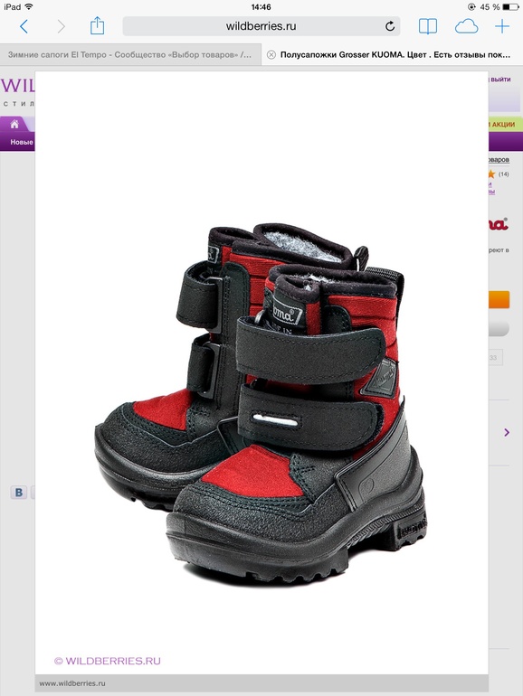 Неудачные покупкиВыбирала долго, отзывы читала - вроде отрицательных не было... Да и в общем то внешне они мне оч понравились, внутри теплые, аналог Куомы.... Но .... Буквально через 2 недели липучки перестали функционировать вообще... В процессе носки обнаружилось, что они достаточно широки в голенище даже с максимально затянутыми липучками (когда они еще "липли"..).... В общем такая вот неудачная покупка для меня!))