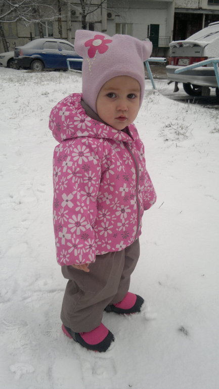 у нас поддёва такая же и шапка только сиреневая. Комбез тоже лесси раздельный. Стирается отлично, сохнет за ночь.Шапка осень, в минус я не рискнула одеть. Гуляем до -10, потом переодеваемся потеплее - попа подмерзает. А слева что, манишка?