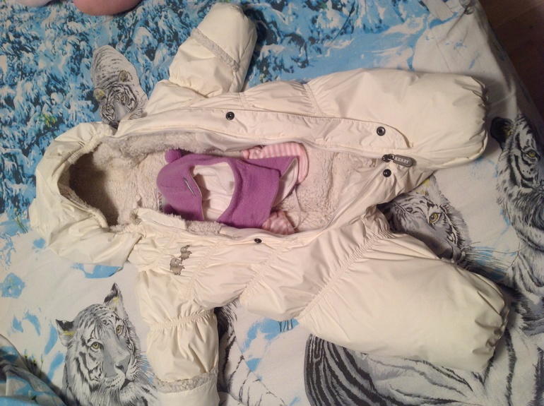 У нас керри "с зайцами" ходим гулять до -17 на час. вниз боди, колготки и комбез(как толстовка с небольшим начёсом), лежим в одной люльке без конверта. приношу домой горячего, мерзну во время этих прогулок только я).... если приходится передвигаться на машине, то даже в одном боди и колготках ребенок сырой, при этом мы с мужем в верхней одежде и ничего) Размер комбеза 68 при росте 73- впритык (если не вытаскивать ножки), из-за этого шея немного открыта, приходится одевать шарф.