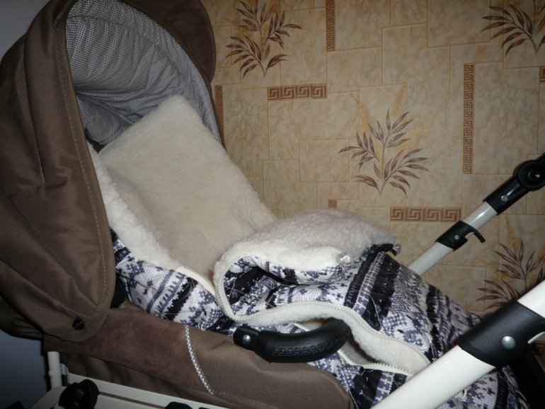 Ниже - фото с максимально поднятой подножкой и с меховым конвертом -
