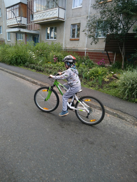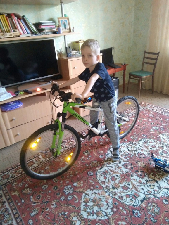 О велосипеде: лёгкий, отличный ход, уже с 6 скоростями, которые достаточно легко переключаются, тормоза только ручные (за это переживала, ребёнок на тот момент пользоватся только "педальками назад"). Но сел и поехал, понравилось, маленький стайло сразу же и продали. Фото: