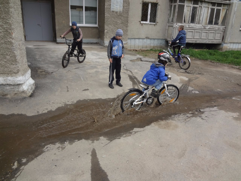 Приехал нам наш заказанный a-matrix 11 июля. Изначально показался очень большим по сравнению с 20-дюймовым космиком. Ездили получать с мамой в ТК, она сказала: "Ну через пару лет будет ездить, вечно ты торопишься". Привезли домой, настроили, пошли пробовать практически сразу же. Итак, исходные: Ром, 6 лет, рост 126, вел 24 дюйма, рама 13... сел и поехал!