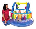 Муж сыну летом,как только начал сидеть купил за 1500 надувной бассейн,тогда использовали по назначению,а потом,точнее сейчас я его вымыла(он во дворе стоял)и надула в комнате(у нас места много,а он примерно 120:120).Малышу дико нравиться-он туда и залазиет и вылазиет сам,и игрушки не раскиданы по всему дому.