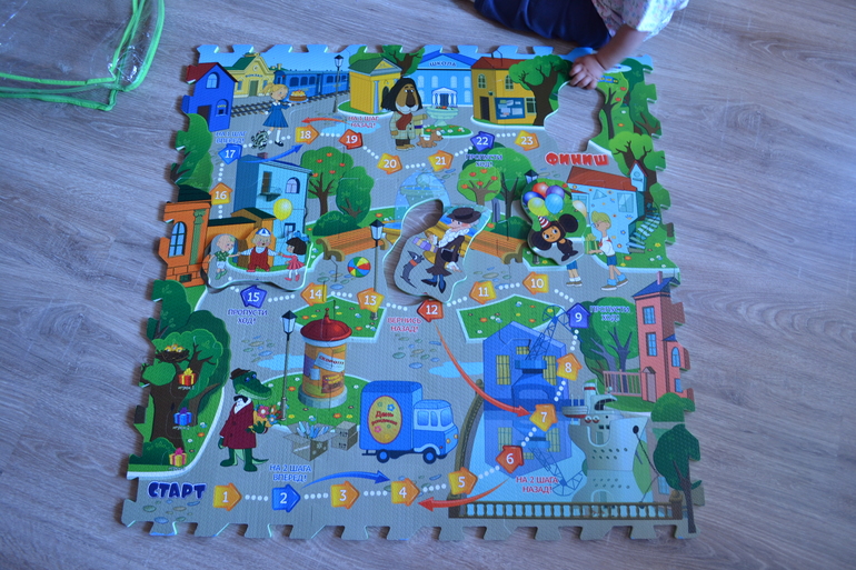 Коврик с чебурашкой и геной. Эта подружка себе заказала, но чувствую нам такой тоже нужен будет. Чебурашка у нас в почете, я об этом уже писала в дневнике у себя. А тут и коврик, и игра, да еще и детальки с героями из мультика вынимаются - мини пазл получается. Не переключила у фотика и поэтому фотка такая голубая получилась.