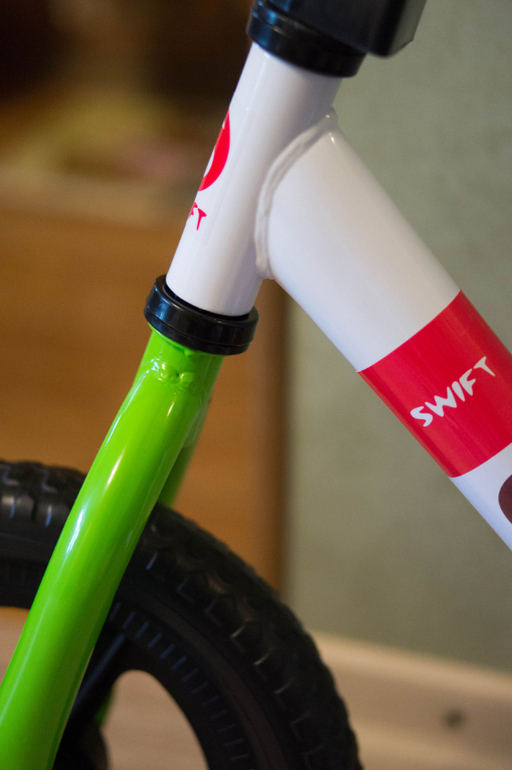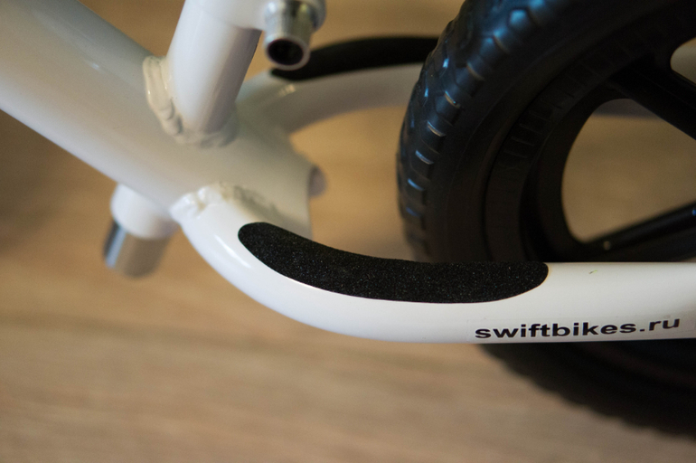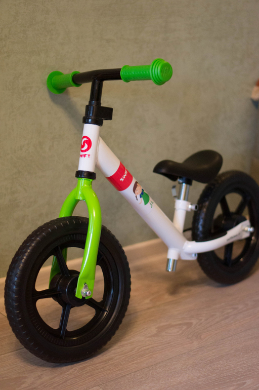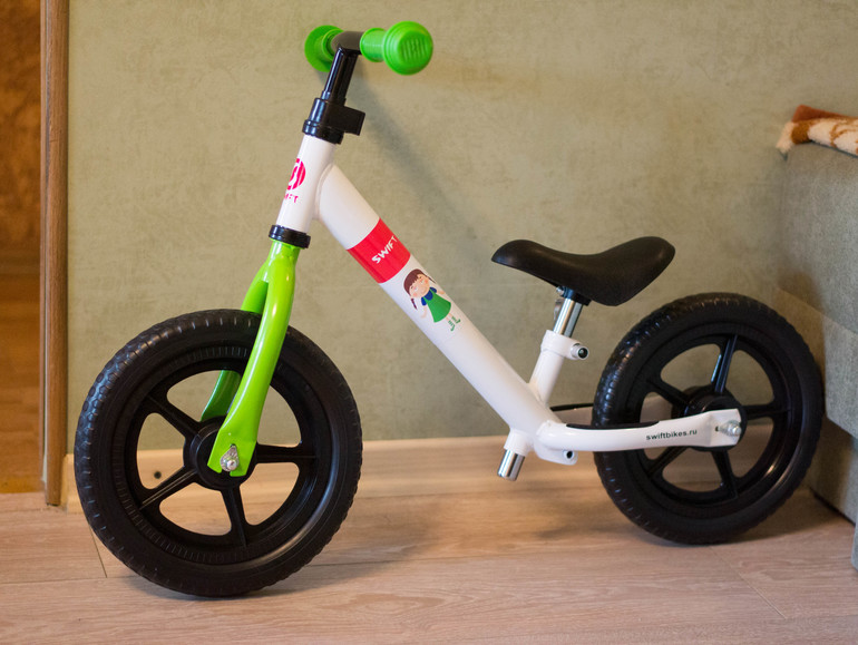 Свифт нам обошелся в 2900 с доставкой, вес его заявлен 2,6-2,8 на разных сайтах по разному, но мы взвесили его на безмене, получилось 2,790 кг, легкий. Колеса как у страйдера из eva-полимеров, минимальный рост от 80 см, минимальная высота седла 29 см, так же у этой фирмы есть еще 2 модели, есть еще более легкий, с алюминиевой рамой ( у нас стальная), а есть с алюминиевой рамой и надувными колесами, стоят они на 1000 дороже. Гарантия на раму 5 лет, все ключи для сборки есть в комплекте, муж собрал минут за 5. Рама сварена хорошо, но все надписи в виде наклеек, честно сказать, меня это не смущает, так как ребенок растет и транспорт тоже приходится подбирать по параметрам и возрасту. А ребенок может и стальную раму раздолбать и ободрать всю краску ( вспоминаю свои велосипеды, особенно в детстве, особого дела до внешнего вида мне не было, главное, чтобы ездил, об этом скорее печемся мы, мамочки :))) живые фото выложу немного позже