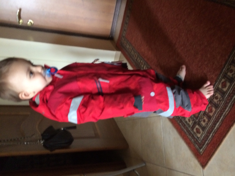 Он очень крутой!!! Вживую еще лучше смотрится!!! Да, в 90 вы бы утонули)) я вот теперь сама в сомнениях — у нас рост 90 см. А 90 -го размера нигде нет уже(( 80-й еще можно найти. Боюсь, хватит ли его нам на зиму??? У вас запас такой приличный! Как вам комбез по качеству? Он плотный?
