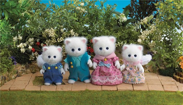 у нас таких много. дом со светом полностью мебелированный и несколько семеек. Кстати я тоже в свое время искала этих котов но в реальности они не особо мне понра. как раз именно та умилительная пушистость , которая выглядит наяву не так))))))))) дочка любила играть . многие мамы играют с увлечением. еще можно декорировать дом шторками обоями. ведь этого там нет) вот мамы и подключаются)))))))))