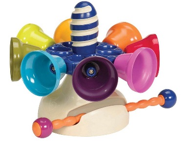Вместо нее хочу такую игрушку, не юла, но принцип тот же музыкальная игрушка B.Dot "Карусель колокольчиков" Она представляет собой основу, к которой крепятся восемь разноцветных металлических колокольчиков, и специальную палочку. Колокольчики прекрасно передают звук, каждый из них имеет свой тон. Можно раскрутить карусель, и ударяя палочкой по колокольчикам, сочинять музыку. В комплект входит буклет, в котором записаны семь мелодий, которые малыш сможет самостоятельно сыграть.