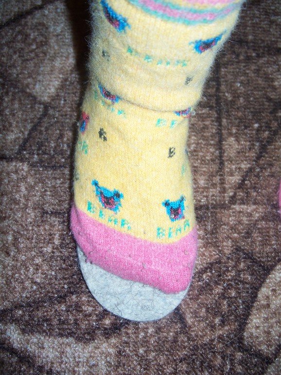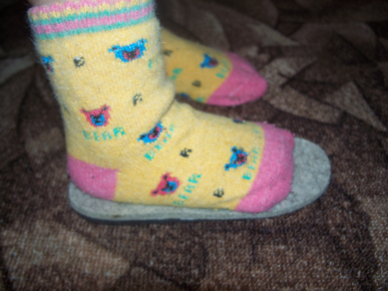 Смотрите сами, оставлять или нет. Носок - анорка тонкий совсем. До зимы 4 месяца. Ребенку 2,3 года, ножка вырастет максимум на 0,5. Мне как показалось - именно в том месте, где большой палец - запаса нет практически. А в середине стельки - его много. Сама стелька несуразно узкая... Ходить - ходит, но они тяжеловаты. Прошлогодние кожаные Сказка с мехом и то легче!
