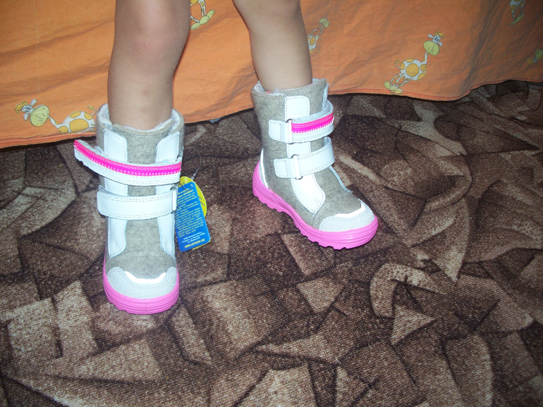 Детская обувьКупила с условием, что если не подойдут, то вернем. В магазине мне они вроде понравились, дома, крутя в руках начала сомневаться. Войлочные сапожки Котофей. Полнота указано - 3. 2 липучки хорошо фиксируют ножку. 26 размер, стелька 16,5. У дочи ножка узкая, но тут стелька такое ощущение, что еще уже))) Где голенище - мех шикарный, а в носке дома потрогала - его там почти нет, носок может мерзнуть. Отзывов много, кому-то было темпло в подобных, кто-то мерз при -10.