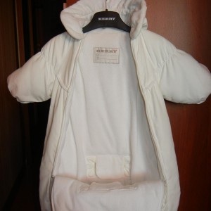 Был такой на выписку и всю зиму отходили — 62р, ребенок родился в начале декабря. В начале был велик (на рост 54 и вес почти 4кг при рождении), ручки в рукава не вставляли (просто убирали в мешок). Вниз надевали теплый слип и костюмчик шерстяной. Гуляли без конверта.