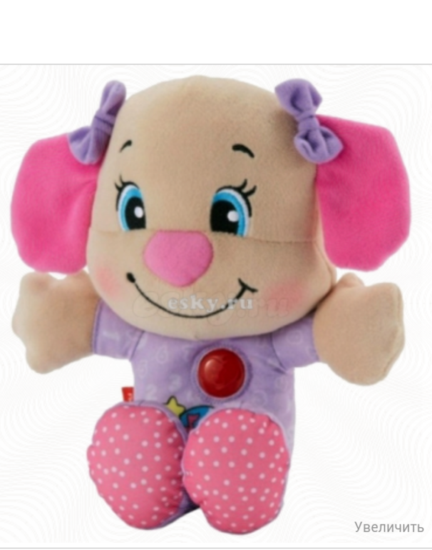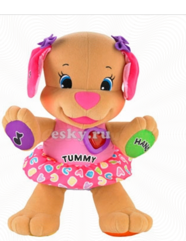 У большой кнопки рука, нога(на одной руке и ноге), живот, ухо(на одном ухе), сердце, только эти части тела произносит. Песенки коротенькие поет до конца. Маленькая тоже песни вроде до конца поет, колыбельныет не считала тк это просто музыка.  Посмотрите в детмире их там море