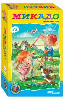 Разноцветные деревянные палочки, деревянное кольцо, кубик. Игра развивает осторожность и чёткость движений. Смысл: вытянуть палочку из "шалашика" не уронив остальные. Кто больше вытащил, тот и победил.