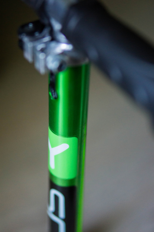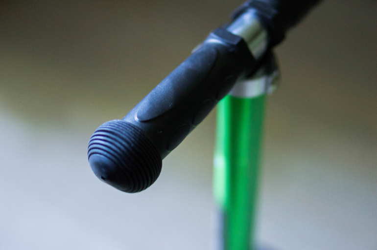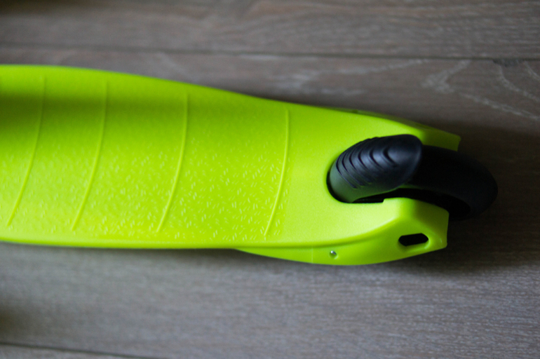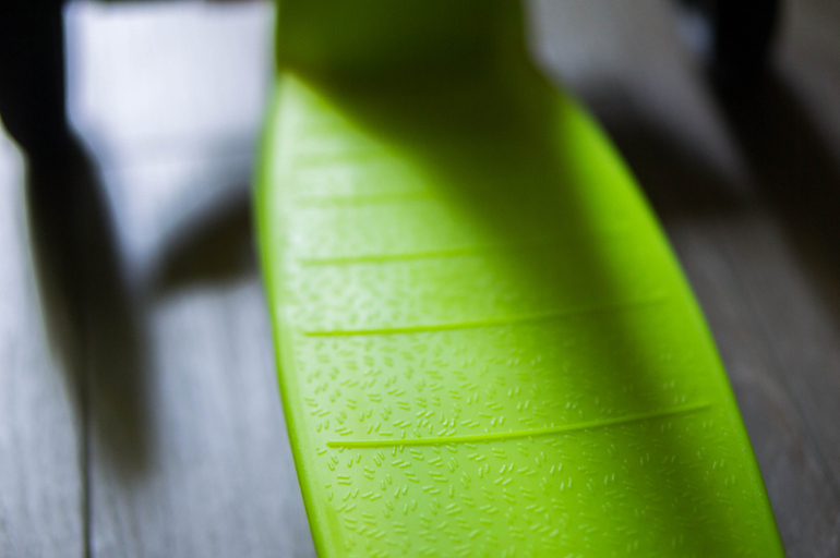 Цвет очень яркий, такой, неоново-салатовый. На пластиковой подножке рифленая поверхность.