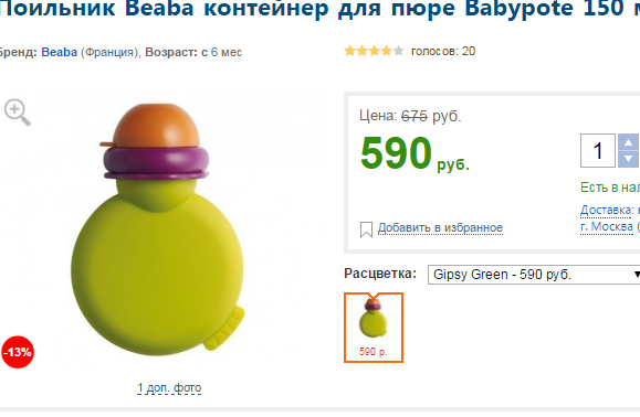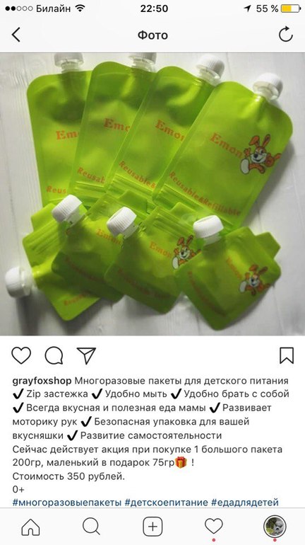 К сожалению у нас в магазинах продаются только одноразовые пакеты infantino, но при цене 18руб за пустой пакет, проще уже купить готовое пюре. На Амазоне можно заказать многоразовые, но боюсь в копеечку выйдут из-за доставки http://www.amazon.com/gp/aw/d/B00AM5NTIS/ref=mp_s_a_1_2?qid=1406574551&sr=8-2#