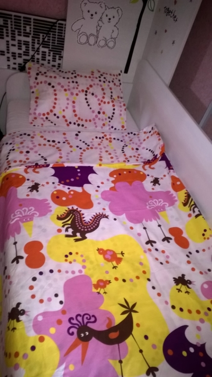 У нас первый комплект- после стирки подсел, но качество хорошее, приятная глазу расцветка.
