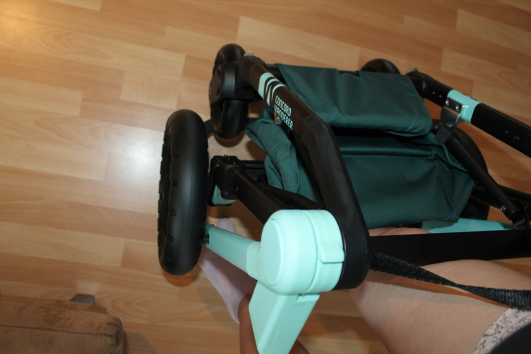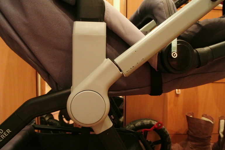 Тут и видно "снимательно-установительные" кнопочки. Шасси можно сложить вместе с прогулочным блоком (размер примерно 56 на 85 в сложеном виде, но можно колесики снять). (А вот над складываниями я голову поломала)