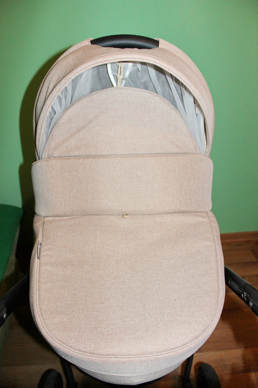 Люлька данной коляски очень вместительна. Не продувается. Имеет регулируемый подголовник. Внешняя обшивка из натурального льная!!! Козырек с встроенной клеенчатой вставкой на капюшоне защитит малыша от ветра и снега, а также опускается. Имеются симпатичные шторки для малыша, которые при желании можно отстегнуть. Внутренняя обшивка люльки - 100% хлопок, которая легко снимается для стирки (при 30° С). Бесшумная регулировка капюшона имеет два положения. Имеет объемный удобный двухслойный капюшон с встроенной антимоскитной сеткой (при жаркой температуре возможно полностью снять с капюшона верхний слой). Легко и просто устанавливается на раму коляски. Комплектуется матрасиком и теплым чехлом - накидкой. Люлька устанавливается в двух положениях (вперед или назад лицом)