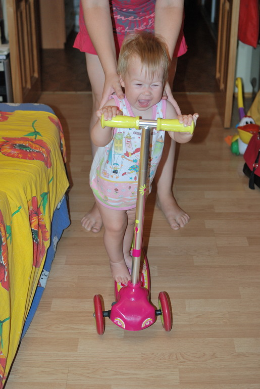 А у вас дочка в каком возрасте прям кататься начала? Моц становится и все, катите его