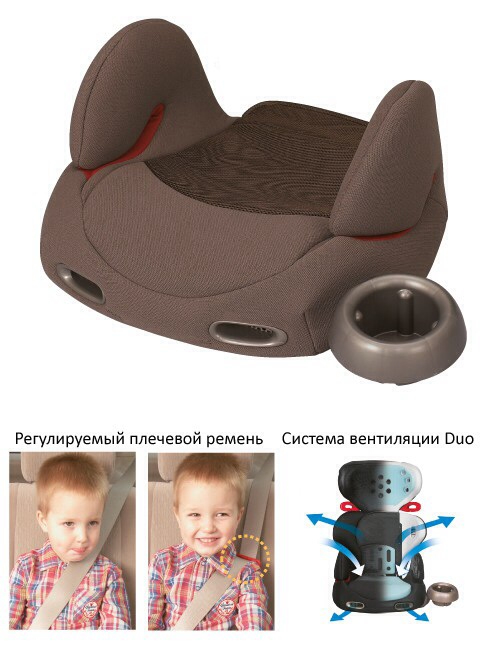 Бустеры все одинаковый и не обеспечивают должной безопасности. Их используют для старших детей от 25 кг или от 8-9 лет