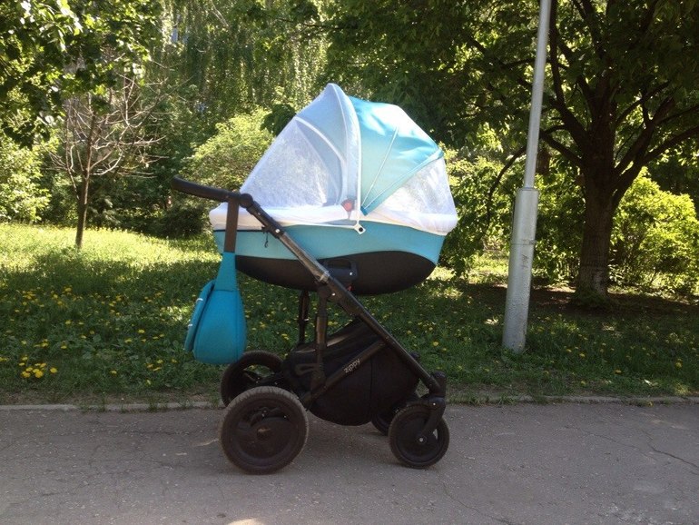 Люлька - огромна. Производитель заявляет 87x39cм, не перемеряла, похоже что так и есть. Чтобы детку не мотало, подкладывала свернутое одеялко. Спинку можно приподнять. Москитка встроена, кап шикарен, с прозрачной вставкой и сеткой, много положений, накидка пригодилась в мае когда было прохладно. Дождевик хороший.