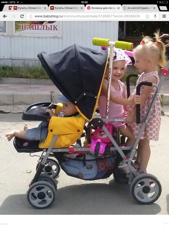 вот http://www.elefantenok.ru/tovary/joovy_caboose_too_ultralight.htmlно что-то мне кажется в 3 ранова-то.Но опять же...можно же поставить автокресло!типа того: