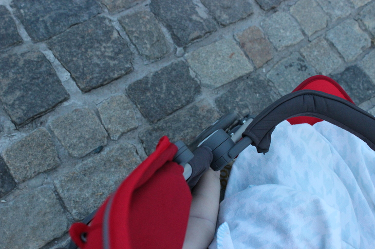 У коляски хороший ход, ее легко катать, высота ручек регулируется. Мы с ней уже и на даче, и по песчаному берегу, и по заросшему лугу, и по брусчатке, в общем везде она хороша!