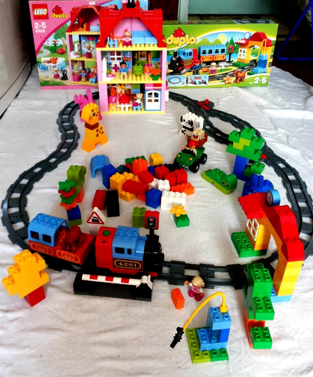Лего дупло домик для кукол и мой первый паровоз и еще дополнительные детали для железной дороги.