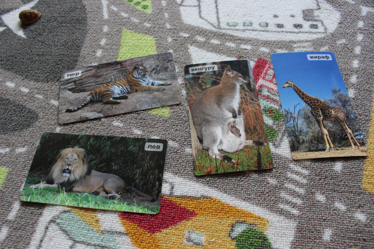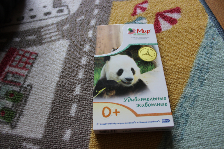Ну, и напоследок карточки "Удивительные животные" из серии Мир на ладошке от Умницы. Купила на Мамси, решила попробовать что это такое. Пособие неплохое. Карточки из плотного картона с фотографиями животных. Сзади о каждом животном написано несколько интересных фактов и есть пример вопроса, который можно задать ребенку. Хотелось бы более ярких фотографий зверушек. А в целом отлично. Посмотрим, заинтересует ли сына.