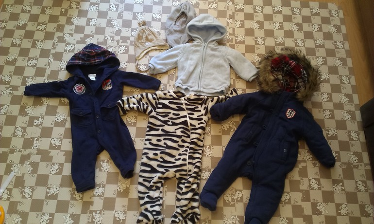 Интересует утепление. Слева утепленный комбез ральф лорен, флис наверное, мягкий. Зебра Некст - пушистая, получается потеплее, но без подкладки. Синий комбез на синтепоне Ральф Лорен, причем не тонкий, не знаю сколько грамм. Кофта с флисовой подкладкой Мазекеа. Есть еще тонкие шапки, но без завязок. И на днях прикуплю флисовый комбез-поддеву. Еще что-то? Комбез на синтепоне потоньше нужен или синим обойдемся?