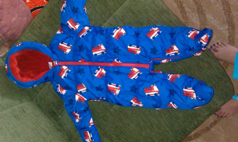 скорее он сентябрь, начало октября, у него теплая флисовая подкладка, а внутри как я поняла синтипон) от капюшона до носочка около 75см. я брала возраст 3-6 мес.