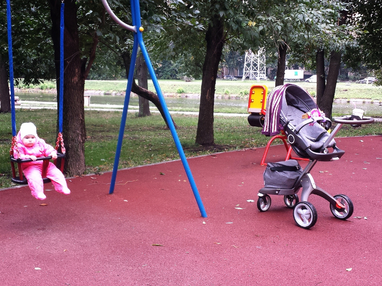 Я вам честно и откровенно скажу что по плитке едет отлично, в этом парке мы гуляем очень часто и по долгу,коляска прекрасно со всем справляется. На фото еще xplory только v3,предыдущая модель,тоже прекрасно едет и не стучит. По таким желтым штукам трясет, но они же не всю дорогу, но меня раздражает. Я честно скажу что очень хотела ее с рождения, но меня задушила жаба и купила эммалюнгу на 10т дешевле) всеравно в итоге купила ее) мое мнение если ребенок летний или хотябы весенний,можно обойтись одной прогулкой, там есть подушечка которая делает почти горизонтальное положение,если осенне-зимний то для большего комфорта малыша люлька нужна обязательно. Из аксов я считаю нужны зонт,всетаки капюшон не большой, моя не любит когда на нее светит солнце, поэтому накрываю пледом, в понедельник купим зонт. Футмуф,тоже естественно обязательный аксессуар. Подстаканник для мамы). Зимник тоже думаю нужен. Насчет шкуры сама еще думаю,но на осень чтоб попе было тепло может и пригодится. Летник, ну вот честно не знаю там классная махровая штука для сидения которую можно стирать до посинения и деть поидее меньше потеть будет,мы потели не больше чем в макларене, поэтому пока не покупала.