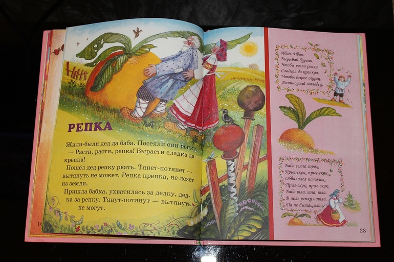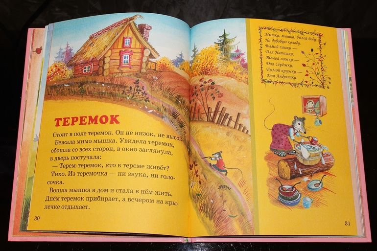Содержит пять сказок в обработке Людмилы Михайловны Жуковой - "Курочка ряба", "Колобок", "Репка", "Теремок" и "Пузырь, соломинка и лапоть". Помимо этого на полях книги расположены потешки, скороговорки и песенки. А на последней странице бумажная выкройка для пальчикового кукольного театра.