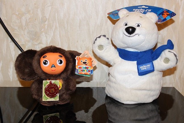 Еще одним подарком стали мягконабивные игрушки, Чебурашка и олимпийский мишка. Я про них подробней писала в дневнике, если кому интересно. Мишка представляет собой игрушку на руку, Чебурашка озвученный.