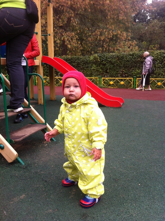 Классный комбез:) А это вы сегодня гуляли? Не жарко?