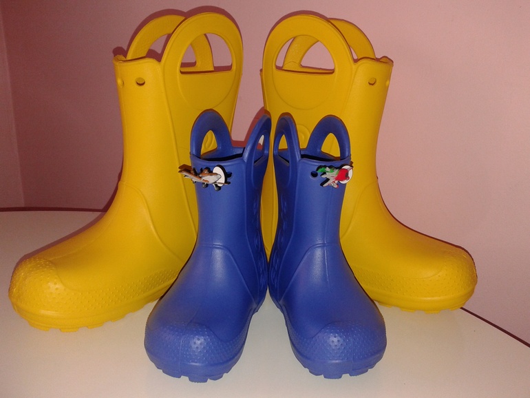 Ну решили, раз резиновые сапоги, пусть это будут кроксы. Пошерстила бб, поняла какой размер нам нужен. Мы сейчас медленно переползаем в 24, поэтому сапоги решили брать С8 и не ошиблись. Поехали в Атриум мерить и покупать. Ребенок надел сапоги, снимать их категорически отказывался) я решила тоже померить. Догонять-то по лужам мне старшего надо))