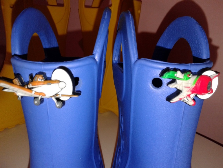 Пока я выбирала сапоги, муж выбирал игрушки, которые можно на них прилепить - остановились, конечно, на двух у-у-у-у!!!! Самолеты если по-русски)