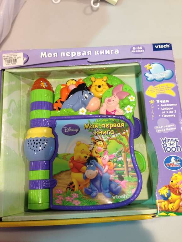 ИгрушкиДевочки, привет! Купила развивашку от Vtech. Книжка читает, поет, мигает лампочками. Интересно сколько моя провозится)))