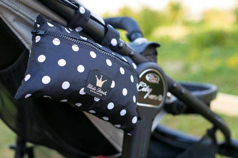 Самое лучшее мое приобретение - тканевый дождевик Elodie Detailes, черный в белый горох.