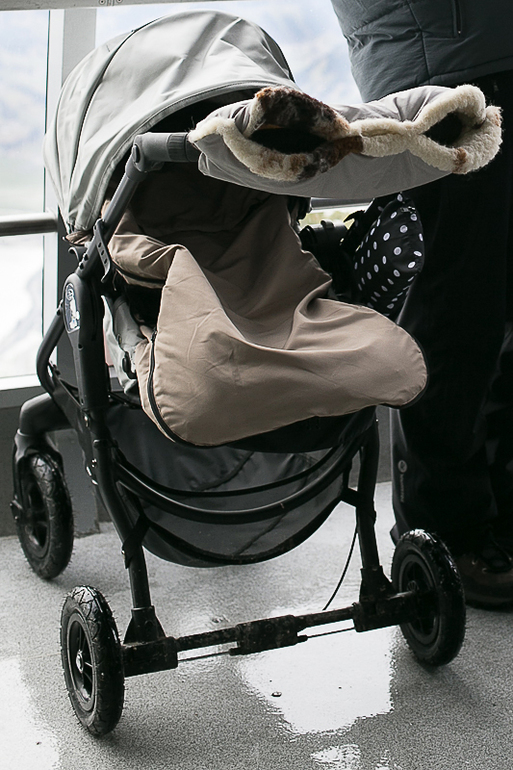 Муфту на овечьей шерсти в цвет коляски я заказывала у мастерицы на Авито. В целом качество хорошее, муфта очень теплая, не промокает в снег. Но лично мне для полного счастья не хватает еще одной кнопки, которая сузила бы пространство внутри, а то голым рукам немного поддувало.