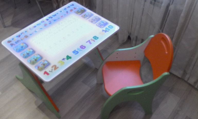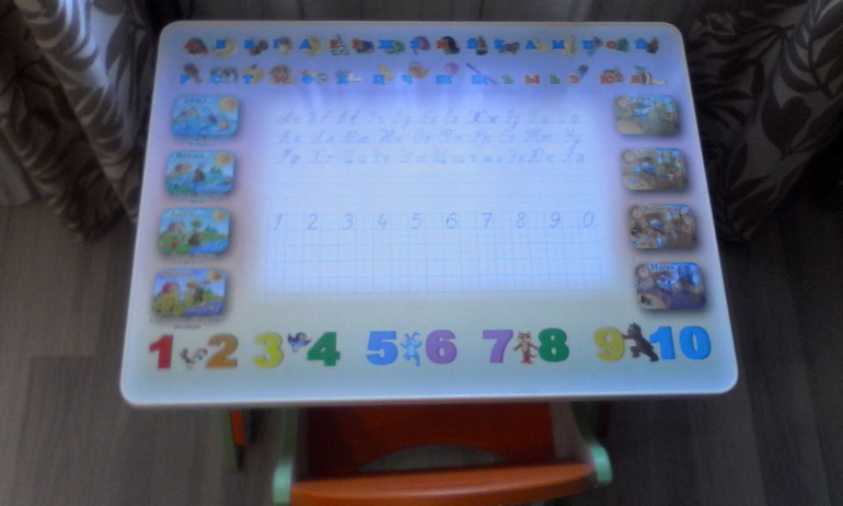 И остановилась на наборе мебели Интехпроект "Буквы-цифры", регулируемая парта (эвкалиптово-оранжевый). Цена 2800р., но он того стоит.