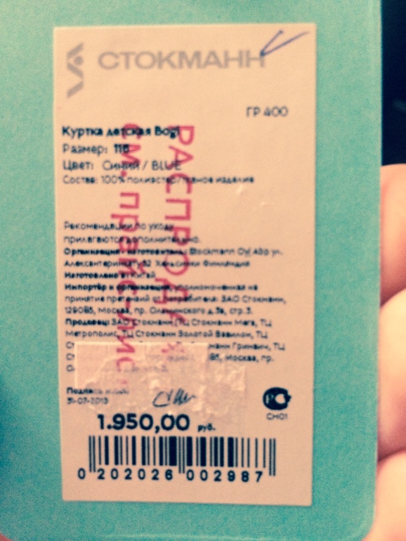 Распродажи. Скидки. Акции.Летом купила ветровку в Стокман, сейчас выбрасывала всякие накопившиеся чеки/ярлычки. И что то попалась она мне на глаза из всей кучи, ну и решила посмотреть изначальную цену. Не знала что на распродаже вещи стоят дороже)))