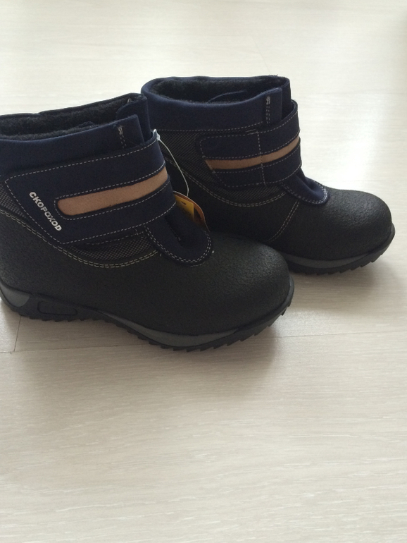 Ботинки ТМ Скороход. Очень долго сомневалась насчет размера, но купила 30рр( 19,7см). Нога у нас 18,7 см. Брать 29- запас буквально 3-4 мм. До весны точно не хватило бы,а тк покупка обуви для ребенка в большим подъемом ноги-каторга, всегда беру с запасом на осень-весну. Нижняя часть у ботинок прорезинена, в лужах можно прыгать))) Шапка пока такая( в общей картине смотрится неплохо), ничего другого подходящего пока не нашла(((
