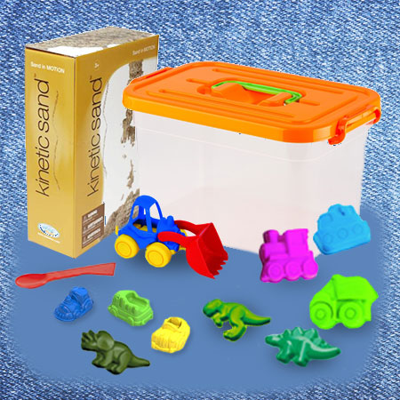 Купила на днях, сыну 2,8 сейчас. 1,5 часа сидел, оторвала от песка на силу, ужинать пора было. Только я брала 2,5 кг (меньше — мало будет) и сразу песочницу надувную. Купила еще формочки, как у вас на фото. Машинки строил, а вот динозавры "не пошли". На следующий день вспомнил о песке, сам попросил поиграть.
