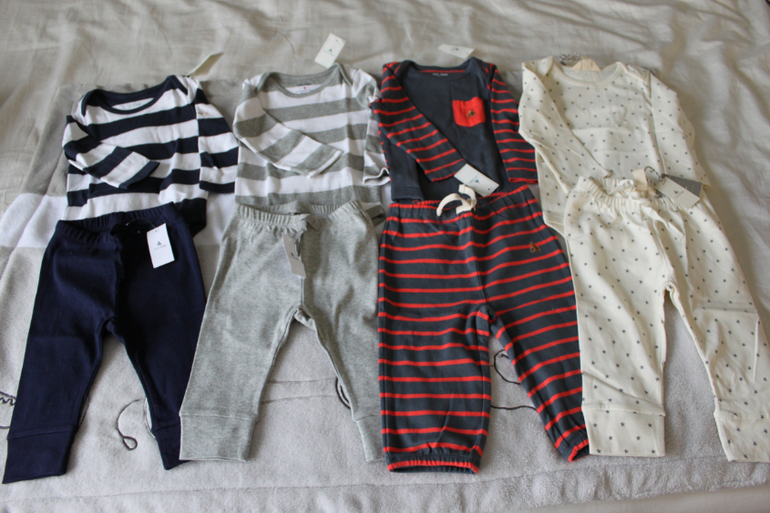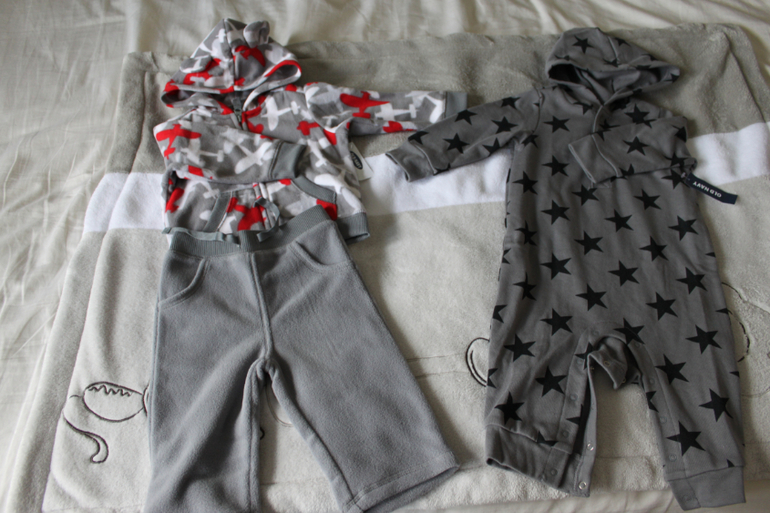 Хочу отметить что вся маркировка одежды 6-12 (Кроме зимнего, его взяла 12-18), но по факту вся одежда разного размера. Что-то мы уже носим сейчас, что-то просто огромное! В любом случае за 8 следующих месяцев мы всё успеем поносить:-)